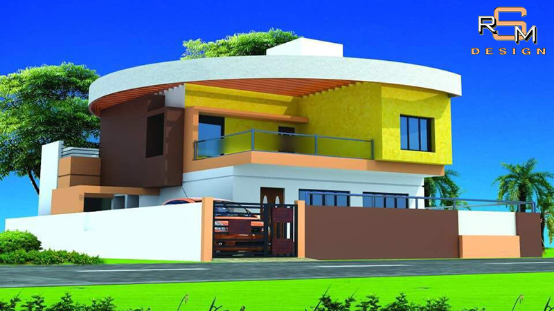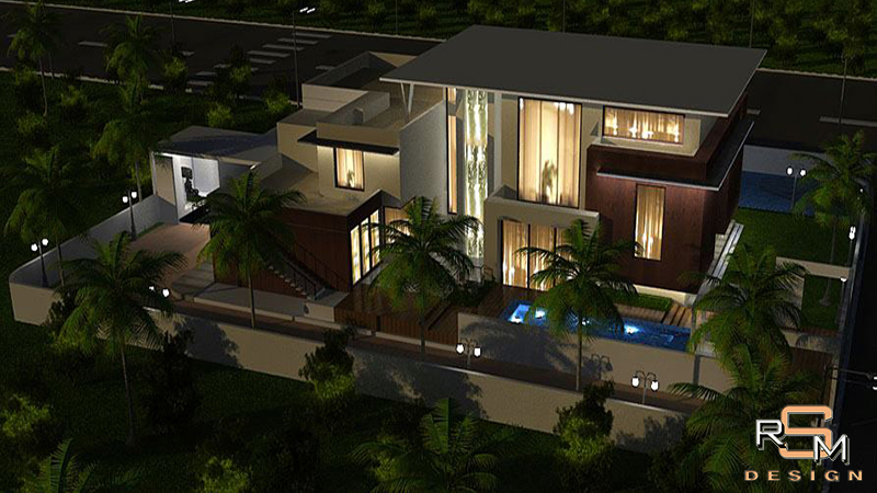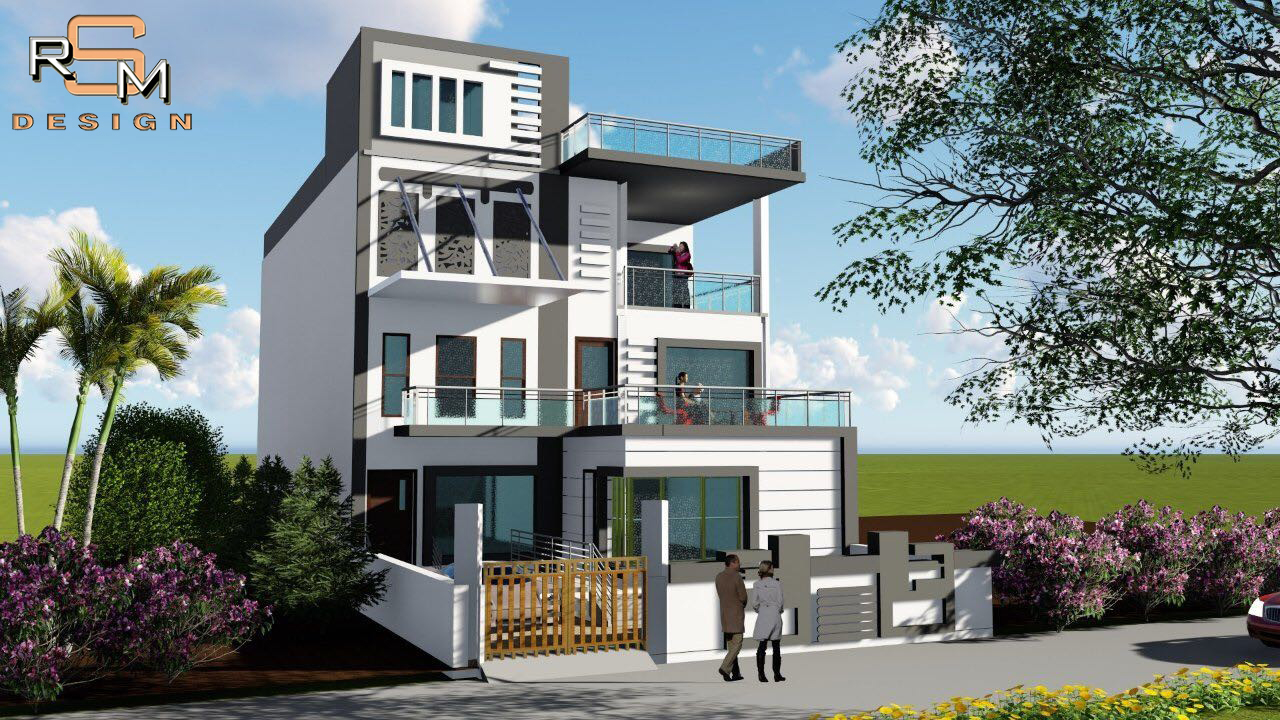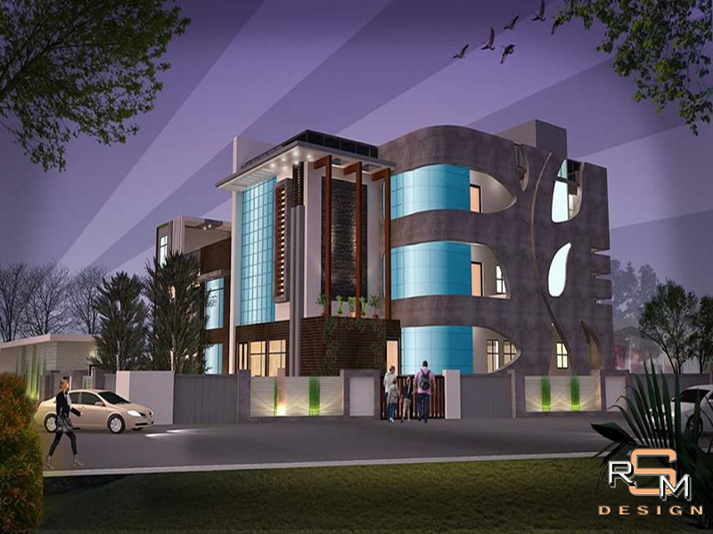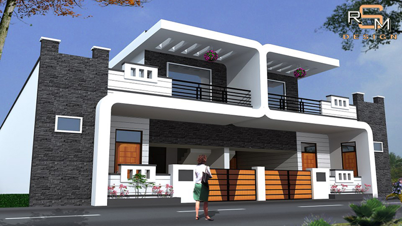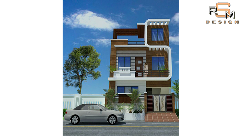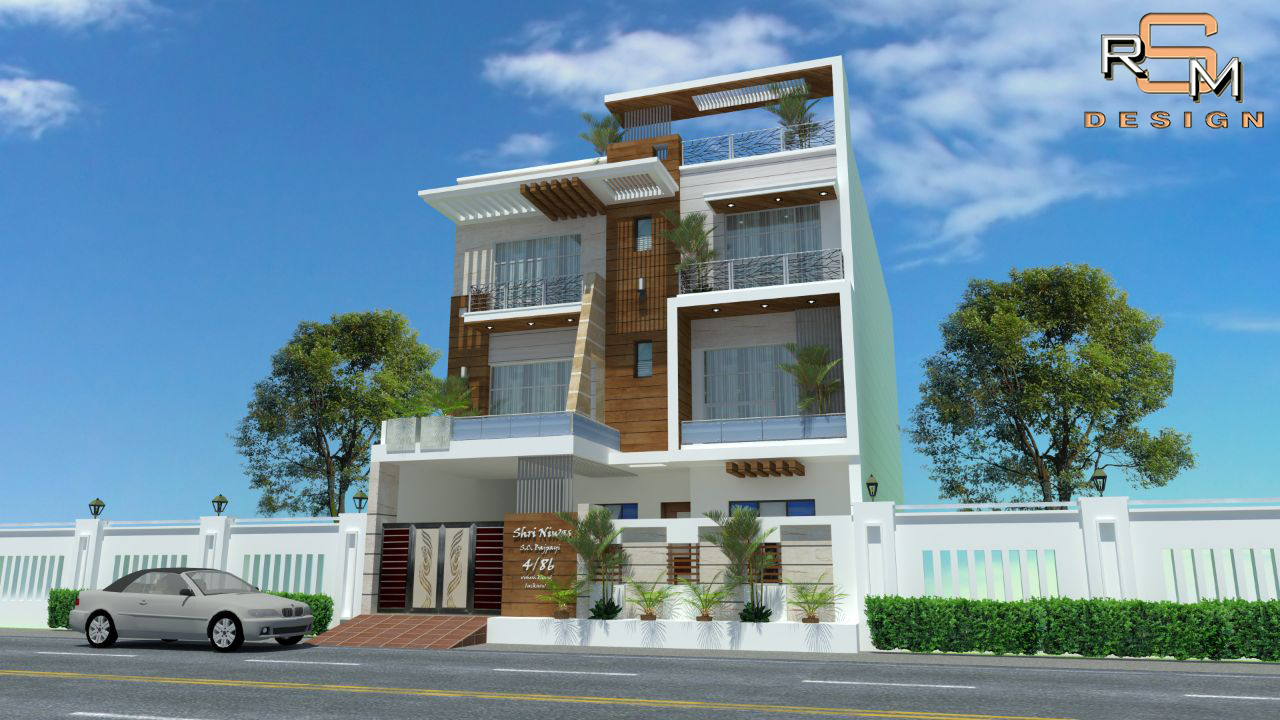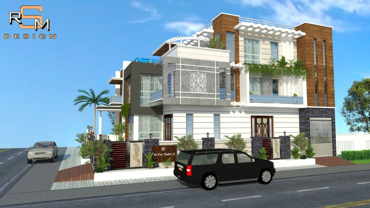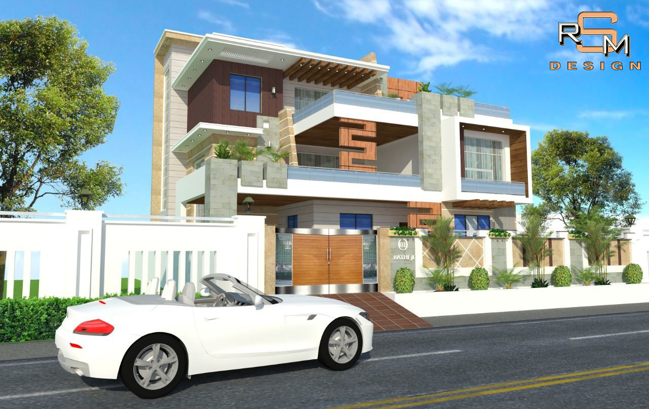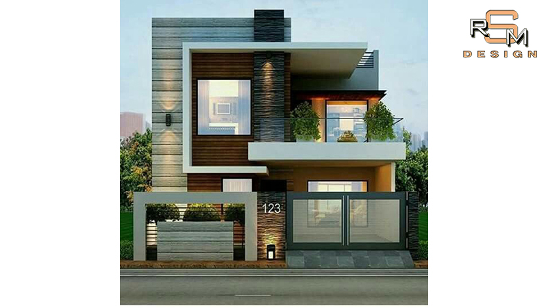 Contemporary residence elevation with balanced massing & glazing.