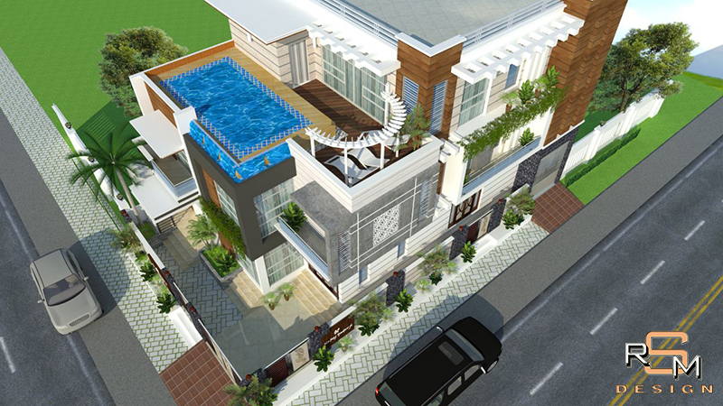 Modern residence with terrace garden.